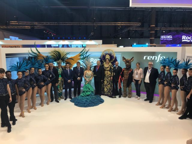 El Carnaval de Águilas visitó el stand de Renfe durante la Feria Internacional de Turismo (FITUR) como primera acción promocional dentro del acuerdo que se firmará, próximamente, entre el Ayuntamiento de Águilas y la Red Nacional de Ferrocarriles Españoles.