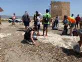 Una vez en la Playa de la Fuente, al pie del monte de Cope, se recogieron alrededor de 50 kilos de plásticos, basura y sobretodo microplástico.