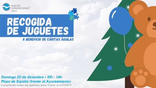 Nuevas Generaciones Águilas ha puesto en marcha su tradicional campaña solidaria de recogida de juguetes. Este domingo, 20 de diciembre, los jóvenes aguileños estarán desde las 10:00 y hasta las 14:00 horas en la puerta del ayuntamiento para que quien así lo desee y disponga done juegos y juguetes para los niños más desafortunados.