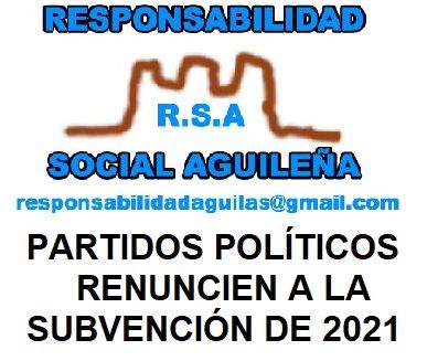 Responsabilidad Social Aguileña insta a los Partidos Políticos de Águilas a que renuncien a la subvención que recibirán en 2021 para destinarla a la lucha contra el Coronavirus.