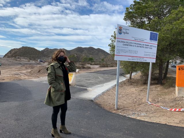 La alcaldesa de Águilas, Mari Carmen Moreno, ha visitado las obras del nuevo tramo de carril bici-peatonal en la RM-D15, carretera que une Águilas con Calabardina, a punto de ser finalizadas. Estaba previsto inaugurar este tramo con una Jornada Ciclista dirigida a toda la población, pero la actual situación pandémica obliga a posponer este paseo "En bici a Calabardina".