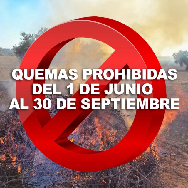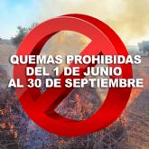 La Orden de 24 de mayo de 2010 de la Consejería de Agricultura y Agua sobre Medidas de Prevención de Incendios Forestales, establece en su artículo 3, en el que se determina la época de peligro, que quedan prohibidas las quemas desde el 1 de junio al 30 de septiembre, ambos inclusive.