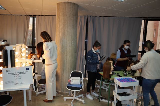 La alcaldesa de Águilas, Mari Carmen Moreno, y el técnico de Gestión Económica-Financiera del Ayuntamiento de Águilas, Diego María Martínez, visitaron la pasada semana a los participantes en el itinerario formativo de inserción "Servicios auxiliares de peluquería", incluido dentro del Programa Operativo de Empleo, Formación y Educación (POEFE) Águilas T-Forma. El programa Águilas T-Forma, cuyo importe asciende a más de 600.000 euros, está subvencionado por el Ministerio de Política Territorial y cofinanciado en un 80% por el Fondo Social Europeo (492.893,22 euros), siendo la aportación municipal de 138.394,90 euros.