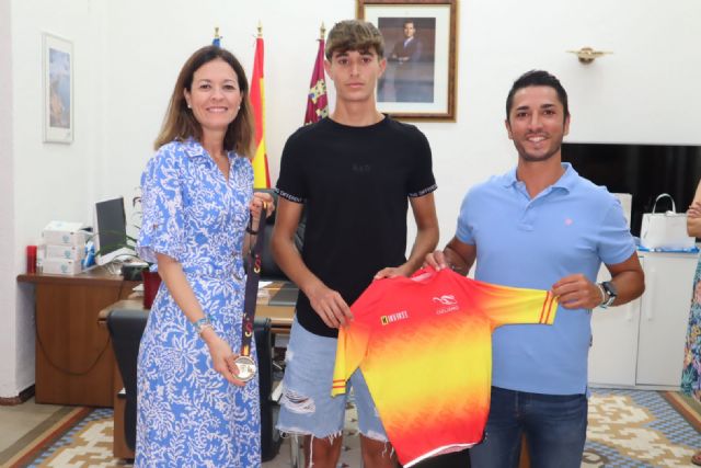 La alcaldesa de Águilas, Mari Carmen Moreno, acompañada del edil de Deportes, Cristóbal Casado, recibió la pasada semana,en dependencias municipales, al joven ciclista aguileño Luis Alberto Lajarín Rojas, como reconocimiento a su extraordinaria trayectoria deportiva.