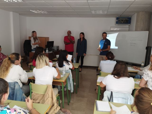 La alcaldesa de Águilas, Mari Carmen Moreno, acompañada por el edil de Desarrollo Económico y Formación, José Manuel Gálvez, visitaron el pasado 14 de noviembre a los participantes de los certificados de profesionalidad que se están desarrollando en el Edificio Municipal "El Placetón": "Cuidados estéticos de manos y pies" y "Docencia de la formación profesional para el empleo".
