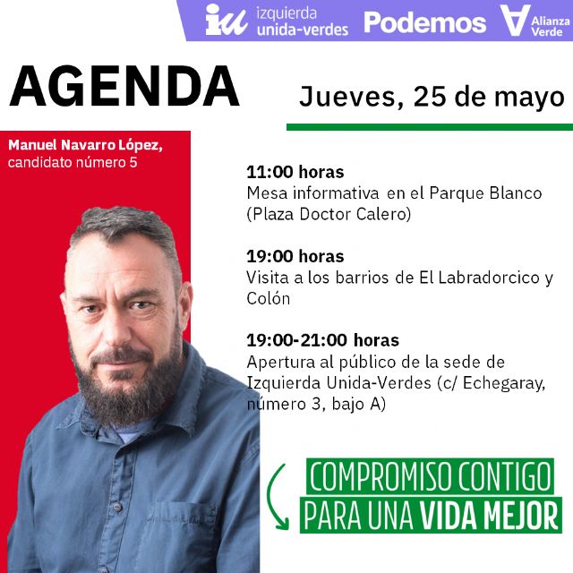 El también coordinador de IU-Verdes de Águilas, concluyó su intervención con unas palabras de agradecimiento a "los voluntarios con ideas y mucha ilusión que están sacando adelante el trabajo de la candidatura de unidad de la izquierda transformadora".