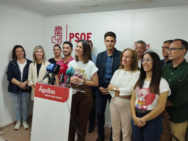 La secretaria general del PSOE aguileño y alcaldesa electa, Mari Carmen Moreno, junto a la candidatura electa y el secretario de organización y diputado electo del PSRM, Juan Andrés Torres, comparecía ayer ante los medios tras las elecciones del pasado 28M. Moreno centraba su intervención en "el agradecimiento a todos los militantes y simpatizantes. A los apoderados e interventores, así como a los presidentes y vocales de mesas, cuerpos de seguridad, funcionarios municipales, Cruz Roja y a todos los que hicieron posible que este día transcurriera con total normalidad. A los medios de comunicación por trasladar a la ciudadanía todos los mensajes de la campaña electoral. A los 8092 votantes que depositaron su confianza en la candidatura del PSOE. Así como a todas aquellas personas que, con independencia de la fuerza política a la que votasen, participaron en este proceso". Moreno agradeció también a todas las personas que apoyaron la candidatura autonómica encabezada por Pepe Vélez y que convirtieron al aguileño Juan Andrés Torres en diputado regional.