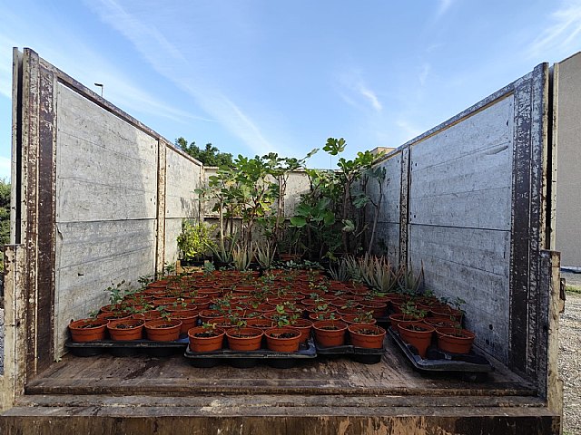 Tres camiones de plantas y arbolado autóctono (unos 700 ejemplares de algarrobos, higueras y granados) ha donado al Punto Limpio del municipio de Águilas la Asociación para la Atención de Personas con Discapacidad Intelectual Urci, gracias al trabajo que realizan sus usuarios en su Hospital de Plantas.