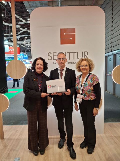 El Ayuntamiento de Águilas ha reafirmado su compromiso con la excelencia turística al renovar oficialmente su distintivo como Destino Turístico Inteligente (DTI) Adherido. El reconocimiento fue entregado en el marco de la Feria Internacional de Turismo (FITUR), en el stand de SEGITTUR, de la mano de la directora de la Secretaría de Estado de Turismo, María Velasco.