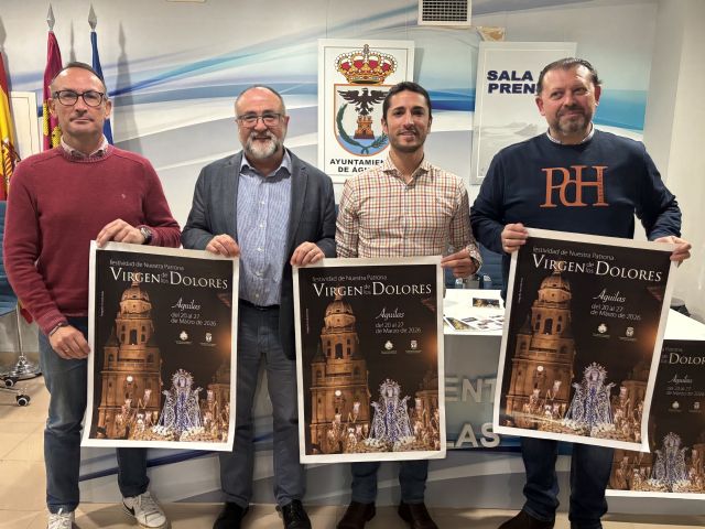 El alcalde de Águilas, Cristóbal Casado, junto al edil de Cultura, José Antonio Consentino, el presidente del Paso Azul, José Cáceres, y el párroco de la iglesia de San José, José Antonio Cano, eran los encargados de presentar ayer el programa de actos con motivo de la festividad de la Patrona de Águilas que tendrá lugar el próximo 27 de marzo.