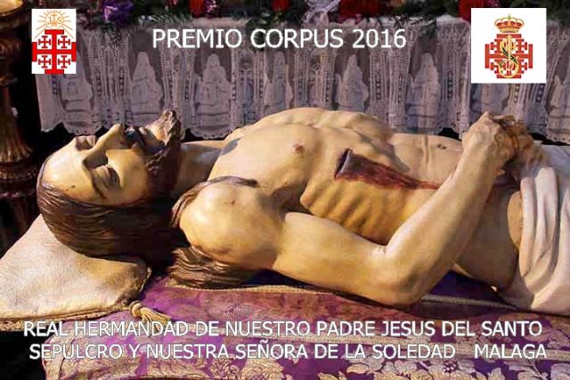 La Archicofradía del Santísimo Cuerpo de Cristo "Señor del Mundo" y Santo Entierro de Alcantarilla, ha decidido por unanimidad de su Junta de Gobierno, la concesión del Premio Corpus 2016 a la Real Hermandad de Nuestro Padre Jesús del Santo Sepulcro y Nuestra Señora de la Soledad de la ciudad de Málaga.