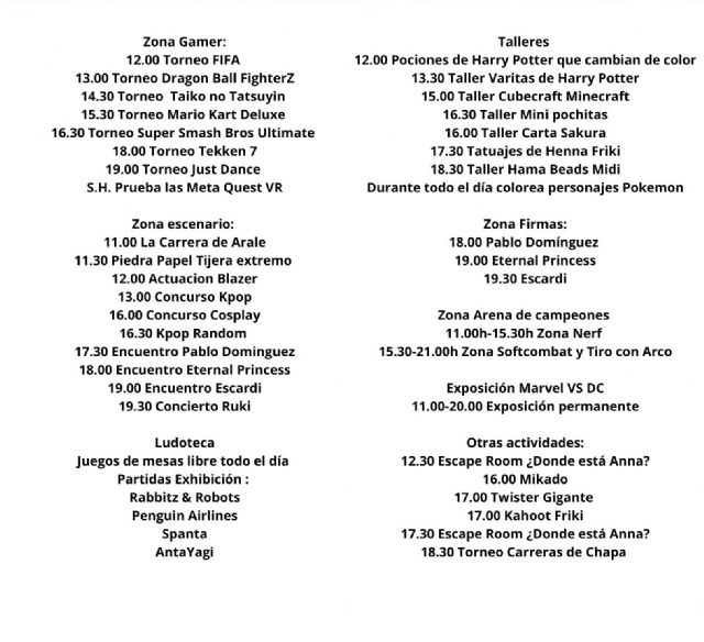 También habrá una zona de exposición Marvel, invitados cosplay, Tetris 3D, carreras de Arale y de Mister Potato, juego de habilidad con globos y kahoot friki.
