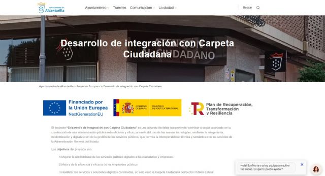 El Ayuntamiento de Alcantarilla es el primero de la Región de Murcia en poner a disposición de los usuarios el servicio Carpeta Ciudadana, que permite consultar en un solo espacio toda la información administrativa y establecer comunicación con cualquier administración pública.
