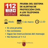 04/03/2024 El 112 probará manana el sistema de envío masivo de mensajes de alerta de Protección Civil en Aledo