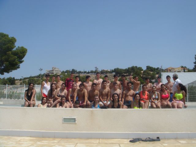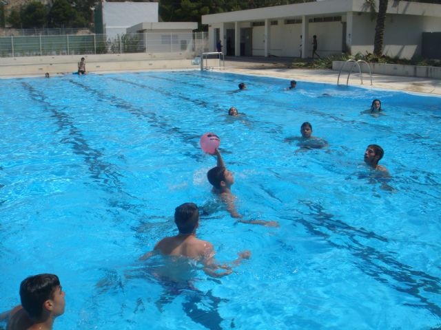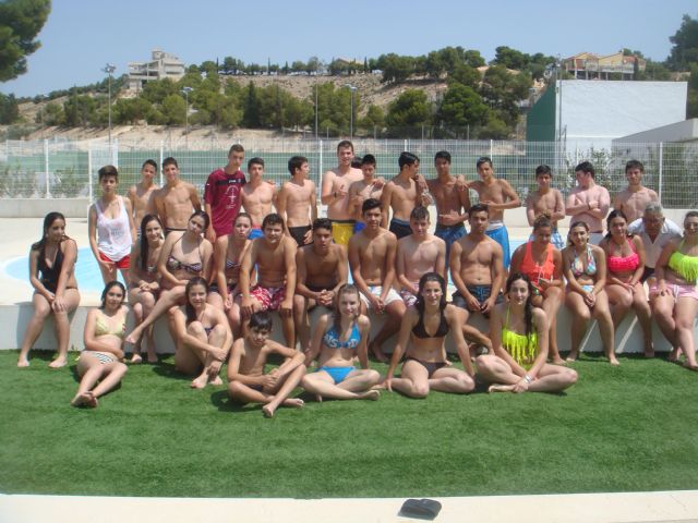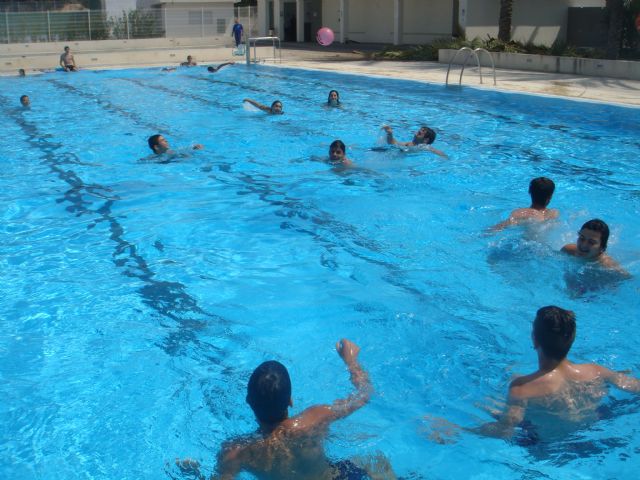 Una treintena de estudiantes de los Centros de Secundaria de Alguazas han sido los encargados de poner este viernes, 28 de junio, el broche final a las actividades del programa de participación y dinamización juvenil "Suma y Sigue" correspondientes a este curso 2012-2013. Y el marco elegido para ese colofón lo ha constituido tanto un encuentro de waterpolo entre los alumnos del IES "Villa de Alguazas" y CES "Vega Media" de la población como un almuerzo de convivencia en las instalaciones de la Piscina Municipal alguaceña.