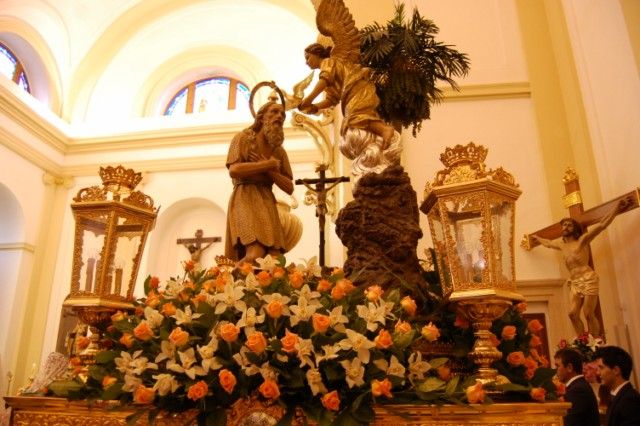 La construcción en el siglo XVI del actual Templo Parroquial dedicado a la advocación de San Onofre, las fiestas patronales celebradas en su honor desde el inicio mismo de su patronazgo sobre el municipio, las tres imágenes que se han sucedido a lo largo de estas últimas cinco centurias o las capillas y retablos que han albergado o albergan dichas efigies han sido otros de los aspectos tratados por el Cronista Oficial de la Villa de Alguazas en el trabajo expuesto en el mencionado encuentro regional de eruditos locales.