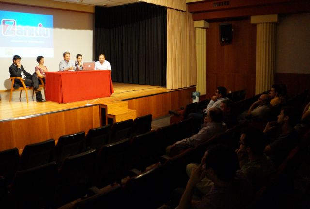 El Salón de Actos de la Casa de la Cultura de Alguazas sirvió en la noche del pasado martes, 27 de mayo, de escenario para mostrar al destacado número de comerciantes y empresarios presentes la nueva herramienta gratuita "Zankiu" de marketing y fidelización de clientes aplicada a la tecnología de los teléfonos móviles y desarrollada por la empresa puntera en su sector "Mapeka".
