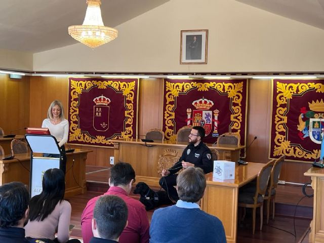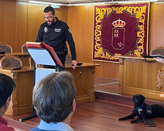 Esta mañana el Ayuntamiento de Alguazas ha incorporado a su plantilla de Policía Local al agente canino Theo, quien ha jurado su cargo en voz de su agente-guía José Antonio Puche. Con esta incorporación, el municipio estrena una unidad canina en el cuerpo con un can especializado en la detección de todo tipo de estupefacientes y "así perseguir el consumo de drogas".