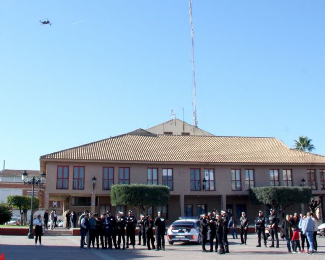"Alguazas ya no es lugar para los delincuentes" ha titulado el Alcalde entre aplausos, manifestando su apuesta firme por dotar de medios y herramientas a la Policía Local. Para terminar, se ha podido disfrutar de una increíble exhibición de Theo en acción, realizando distintas labores de detección de drogas entre personas o registros de vehículos. Por último, la empresa Dronemur ha realizado una exhibición de las funcionalidades que un dron puede tener para la Policía Local.
