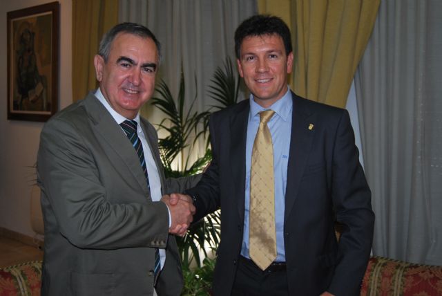 El alcalde del Ayuntamiento de Alhama de Murcia, Alfonso Fernando Cerón Morales, ha sido recibido esta mañana en su despacho por el delegado del Gobierno, Rafael González Tovar.