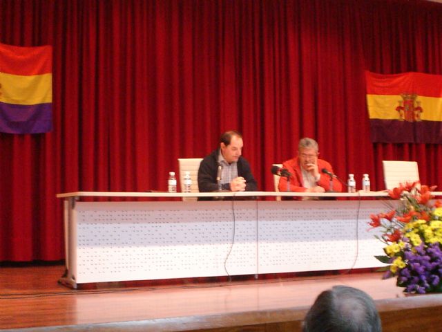 El pasado martes 17 de abril se desarrollo en la Casa de la Cultura Alhama la Conferencia "Hacia la III Republica" que, organizada por IU-Verdes, impartió el ex-diputado Antonio Romero.
