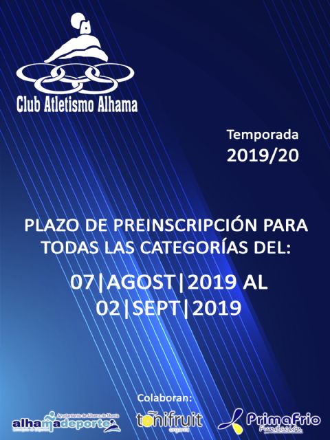 El plazo de preinscripción del Club Atletismo Alhama finaliza el próximo lunes 2 de septiembre.