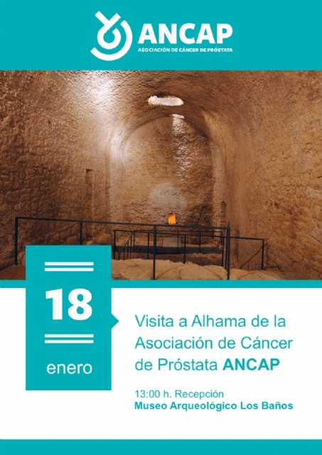 Este sábado, 18 de enero, unas 40 personas venidas de toda la Región de Murcia pertenecientes a la Asociación Nacional de Cáncer de Próstata (ANCAP), visitarán los lugares más emblemáticos de la localidad, como el castillo, el museo arqueológico Los Baños y el casco antiguo. El lugar de encuentro será la puerta del Consistorio y la visita estará guida por el cronista de la villa, José Baños.