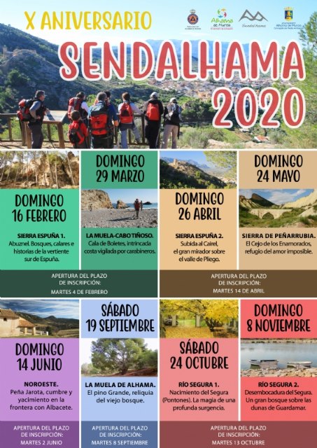 La primera de ellas será el domingo 16 de febrero, correspondiente a la ruta ‘Sierra Espuña 1’, y el plazo de inscripción comienza el martes 4 de febrero.