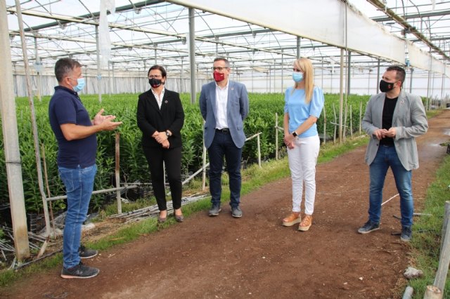 La empresa alhameña Beneflor ha sido objeto de visita hoy de la alcaldesa, Mariola Guevara, el concejal de Agricultura, Antonio José Caja, y tres diputados de la Asamblea Regional, Diego Conesa, Magdalena S. Blesa y Fernando Moreno. Allí han visitado las instalaciones de esta mercantil del sector de la flor cortada -uno de los más importantes de la Región de Murcia- acompañados por su gerente, Francisco Benedicto, quien ha hecho balance de la situación vivida estos meses y les ha guiado por los distintos invernaderos que disponen en la zona.