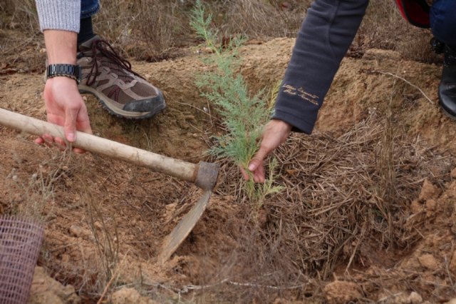 El concejal de Medio Ambiente, Antonio Espinosa, se ha desplazado hasta el paraje municipal para comprobar las acciones de repoblación que está realizando la asociación durante estos días.