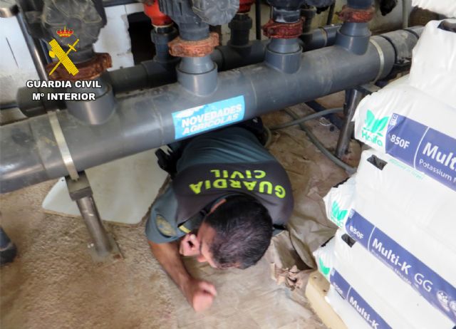 La Guardia Civil de la Región de Murcia ha desarrollado la operación 'Aljibe', en la que ha descubierto una desalobradora ilegal y seis pozos sin autorización en una explotación agrícola de Alhama de Murcia.
