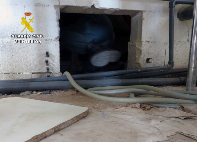 Tras ubicar la finca, los guardias civiles llevaron a cabo la correspondiente inspección en la misma. En el interior de una nave utilizada como almacén, hallaron una obra anexa que llamó su atención. Los efectivos de la Benemérita comprobaron que debajo de los cabezales de riego se encontraba una ventana de pequeñas dimisiones, que ocultaba un hueco de entrada a un cuarto contiguo.