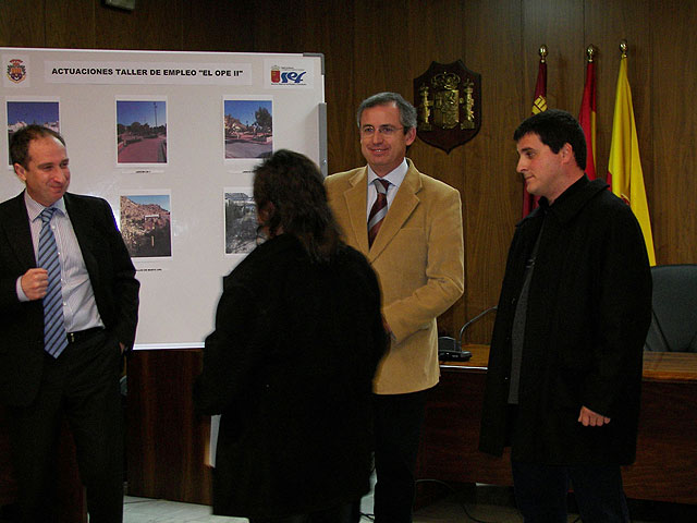 El Director General del Servicio de Empleo y Formación, Ginés Martínez, y el Alcalde de Archena han clausurado esta mañana el III Taller de Empleo ‘El Ope II’. Un curso donde 24 desempleados han podido aprender un oficio al tiempo que han remodelado o construido espacios verdes o urbanos para la ciudad.