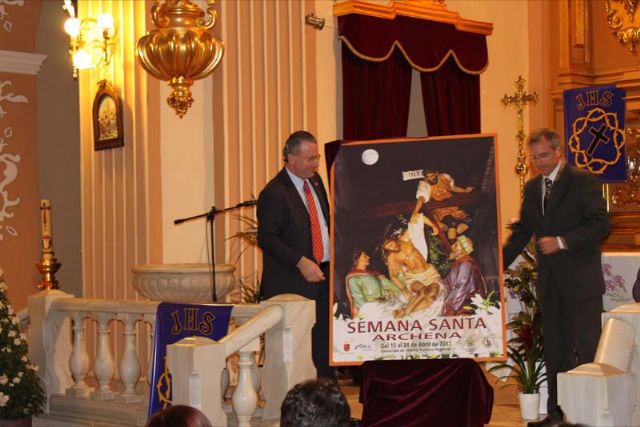 Ayer sábado fue presentado el Cartel de la Semana Santa de Archena 2011 en la Parroquia S. Juan Bautista de Archena. Comenzó el acto con la lectura del Acta por parte de D. José Julián García (Secretario del Cabildo Superior de Cofradías) en la que se nombraba al Pregonero y al Nazareno del Año, así como indicando a que imagen y Cofradía pertenecía este año el cartel anunciador. La imagen en concreto de este cartel hace referencia al Descendimiento de Cristo, conjunto perteneciente a la Cofradía del Cristo del Gran Poder.