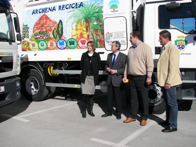El Alcalde de Archena, Manuel Marcos Sánchez Cervantes, la Primera Teniente de Alcalde, Patricia Fernández, han asistido a la presentación pública de dos nuevos camiones de Recogida de Basura que la empresa adjudicataria Banalva ha incorporado esta mañana. Con estos nuevos vehículos son ya cuatro las unidades de esta clase de vehículos con los que se cuenta para realizar el Servicio Municipal de Recogida de Basura en todo el municipio. El director de la empresa, Silverio Banegas, ha explicado que ambos vehículos cumplen perfectamente con los requisitos mínimos exigidos por la legislación medioambiental. Además, cuentan con pantallas de vídeo en cabina para controlar los movimientos de los trabajadores que acompañen al camión y así evitar peligros, y también con sensores en las cargas para detectar cualquier movimiento en torno a ellas. En total las dos adquisiciones han supuesto una inversión a la empresa encargada de este servicio municipal de más de 250.000 euros.