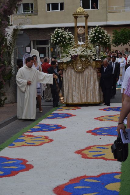 Todas las Cofradías de Semana Santa, el Cabildo, la Hermandad de la Virgen y el Corpus, Anderos de la Patrona, Comisión de Festejos, Reinas y Damas, todo el Equipo de Gobierno Municipal y casi el resto de ediles de la Corporación, la totalidad de párrocos del municipio y niños y niñas que han realizado la 1ª Comunión estos meses pasados fueron los principales integrantes de los acompañantes del Patrón: el Corpus Christi, en una procesión que se efectúa por la tarde, gracias a una Bula Papal de 1910, considerándose así en única población del mundo católico occidental.