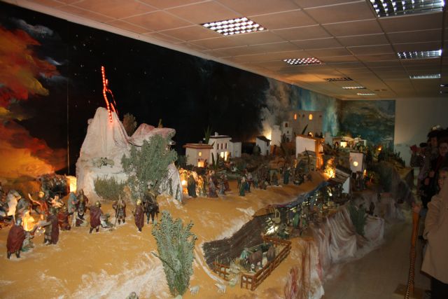 Son un total de 500 figuras de barro fabricadas artesanalmente y entre las que cabe destacar como figuras típicas del municipio una noria gigante para extraer agua, el Castillo de Don Mario, la ermita de los Baños y unas casas huertanas de Archena, entre otras muchas. Esta es la edición número quince de esta muestra belenística municipal.Este belén navideño estará abierto de 10,00 a 14,00 horas y de 16,00 a 21,00 horas, de lunes a sábado, y domingos, de 12 a 14 horas y 16,00 a 21,00 horas, todos los días de Navidad hasta el 8 de enero.El belén municipal ha sido premiado hasta ahora con seis primeros premios, tres segundos y tres terceros premios a los mejores belenes de la Comunidad Murciana.