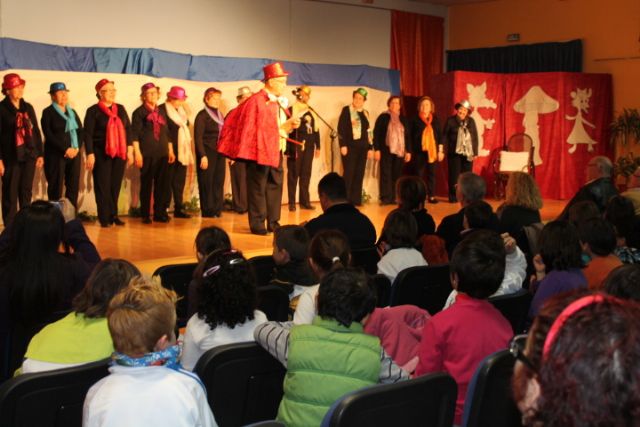 Los mayores participantes han cantado canciones de su niñez y contado cuentos infantiles de su época, haciendo partícipes a los escolares asistentes.