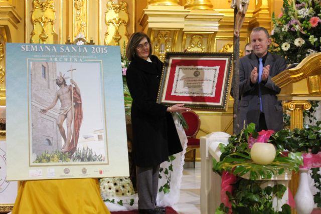 La imagen procesionando del Cristo Resucitado, talla del murciano Hernández Navarro, es la protagonista de la fotografía que ilustra el cartel anunciador de la Semana Santa de Archena 2015, según presentó ayer noche en la Iglesia Parroquial de San Juan, el Cabildo Superior de Cofradías y Hermandades de Archena. La fotografía es obra de Francisco Bocanegra y el cartel está confeccionado e impreso en Imprenta Arboledas. El cartel fue descubierto por el Concejal Fulgencio García (la Alcaldesa, Patricia Fernández, no pudo asistir por enfermedad) y el Presidente del Cabildo, Juan Pío Abenza.