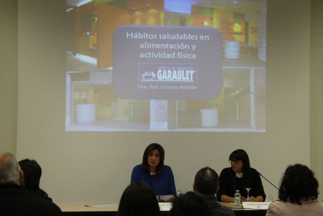 La bióloga, gerente del Centro de Nutrición Garaulet de Molina, ofreció datos sobre una buena alimentación a través de una dieta equilibrada y mediterránea, habló de la importancia del desayuno como parte fundamental en la alimentación, de los buenos hábitos en la actividad física, así como de la importancia de los horarios en la alimentación y la actividad física.