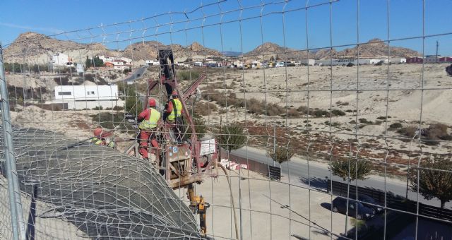 Es una obra de urgencia que está realizando la Consejería de Educación de la Comunidad Autónoma y consiste en la fijación y estabilización del talud con un sistema de contención con malla y bulones. En la zona del patio del centro se está construyendo un colector y sumideros y arquetas para la evacuación de las aguas pluviales, ya que a los problemas de la inestabilidad del terreno se unían las filtraciones de agua que se estaba produciendo perjudicando al citado talud.