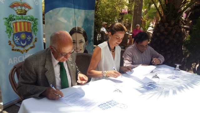 La alcaldesa de Archena, Patricia Fernández, Pedro Marín, director general de Estrella de Levante, y David Rull, gerente del Balneario de Archena, han firmado un convenio de colaboración por el cual la empresa cervecera murciana se compromete a patrocinar eventos, actos y actividades relacionadas con los festejos, medioambiente, turismo y cultura locales, durante los próximos tres años. Igualmente, la entidad termal también se beneficiará de estos patrocinios de la cervecera en la organización de actos de carácter social, cultural, gastronómico y de ocio, en coordinación con el Ayuntamiento, debido al especial interés turístico del Balneario y los acontecimientos a celebrar en sus instalaciones.