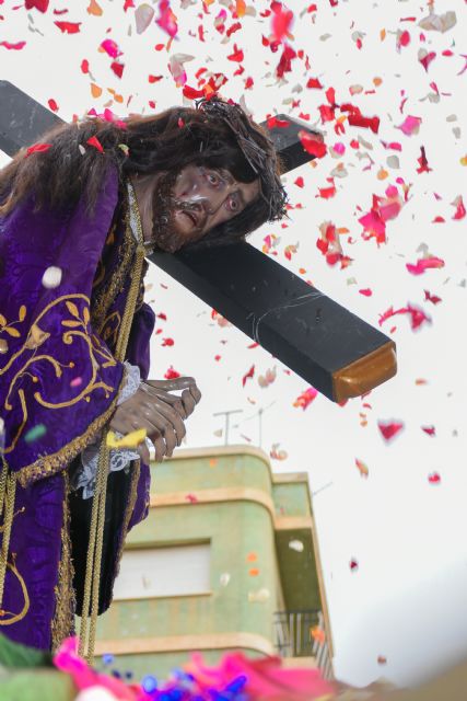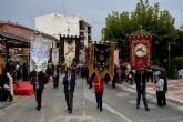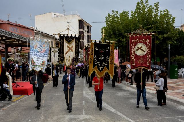 Antes de iniciar el solemne cortejo, el Sr. Delegado de Cofraddías y Hermandades de la Diócesis de Cartagena, D. Silvestre del Amor y el Concejal de Cultura, Anselmo Campuzano, dirigieron unas breves palabras a los participantes en la plaza 1º de Mayo, desde donde partió, y más tarde, se incorporaron para presidir dicho cortejo, que debido al mal tiempo abrevió en su desfile y recorrido, improvisando y cambiando la ubicación de la celebración de la Solemne Eucaristía que finalmente tuvo lugar en la Iglesia Parroquial de San Juan Bautista, no pudiéndose celebrar en los Jardines de Juan Pablo II , tal y como estaba previsto por la organización.