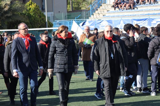 Al encuentro pastoral, celebrado en el Campo de Fútbol 'Andrés Abenza' y organizado por la Diócesis de Cartagena han acudido el Obispo, Monseñor Lorca Planes y el consejero de Educación, Víctor Marín, que han acompañado en el acto de bienvenida a la alcaldesa de Archena.