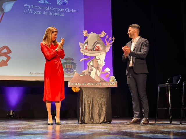 La alcaldesa de Archena, Patricia Fernández, acompañada por el concejal de Festejos, Damián Pagán, ha presentado el cartel de las fiestas patronales en honor al Corpus Christi y la Virgen de la Salud, que tendrán lugar del 11 de mayo al 23 de junio.