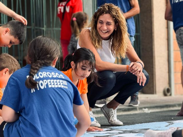La alcaldesa de Archena, Patricia Fernández, hizo el recorrido por las principales calles, donde centenares de vecinos elaboran estas obras que son una expresión cultural única en Archena y que se realizan de sal teñida de vivos colores que representan diferentes motivos religiosos y simbólicos, sobre el asfalto.
