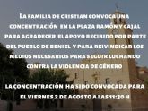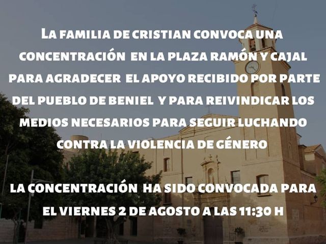 La familia de Cristian ha convocado una concentración en la plaza Ramón y Cajal para agradecer el apoyo recibido por parte del pueblo de Beniel a lo largo de estos días.