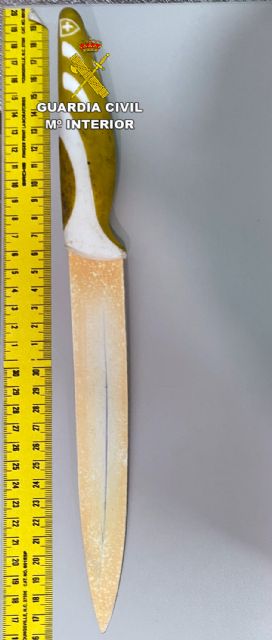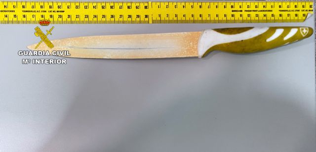 Durante las actuaciones, los guardias civiles también se han incautado del arma blanca un cuchillo de cocina de grandes dimensiones supuestamente empleada para agredir al herido.