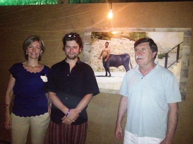 El alcalde de Blanca, Rafael Laorden, y la edil Esther Hortelano inauguraron ayer junto a Angiuli la exposición 'El dinero lo es todo' que recoge el proyecto de investigación del artista italiano sobre los trabajos en el campo relacionados con la vid.