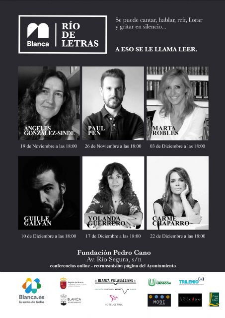 'Río de Letras' arranca el 19 de noviembre en la Fundación Pedro Cano con acceso para público limitado a causa de la pandemia de la COVID-19 y con emisión online para que todas las personas puedan seguirlo de manera virtual a través de los canales de comunicación del Ayuntamiento de Blanca.